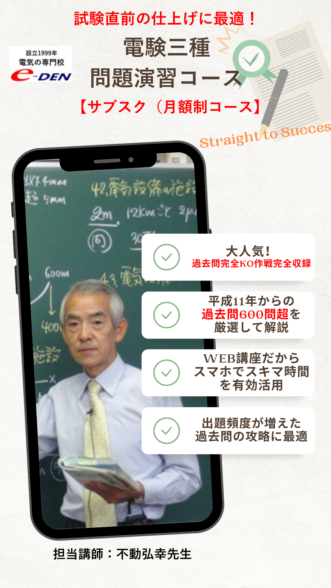 一括で数万〜十数万円が必要な他講座と違い、e-DENは月額 4,980円のみ。