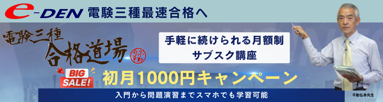 サブスク講座期間限定キャンペーン実施中気軽に電験三種学習をスタートできる大チャンスです。サブスク講座期間限定キャンペーン対象今すぐサブスク講座初月¥1000を申し込む