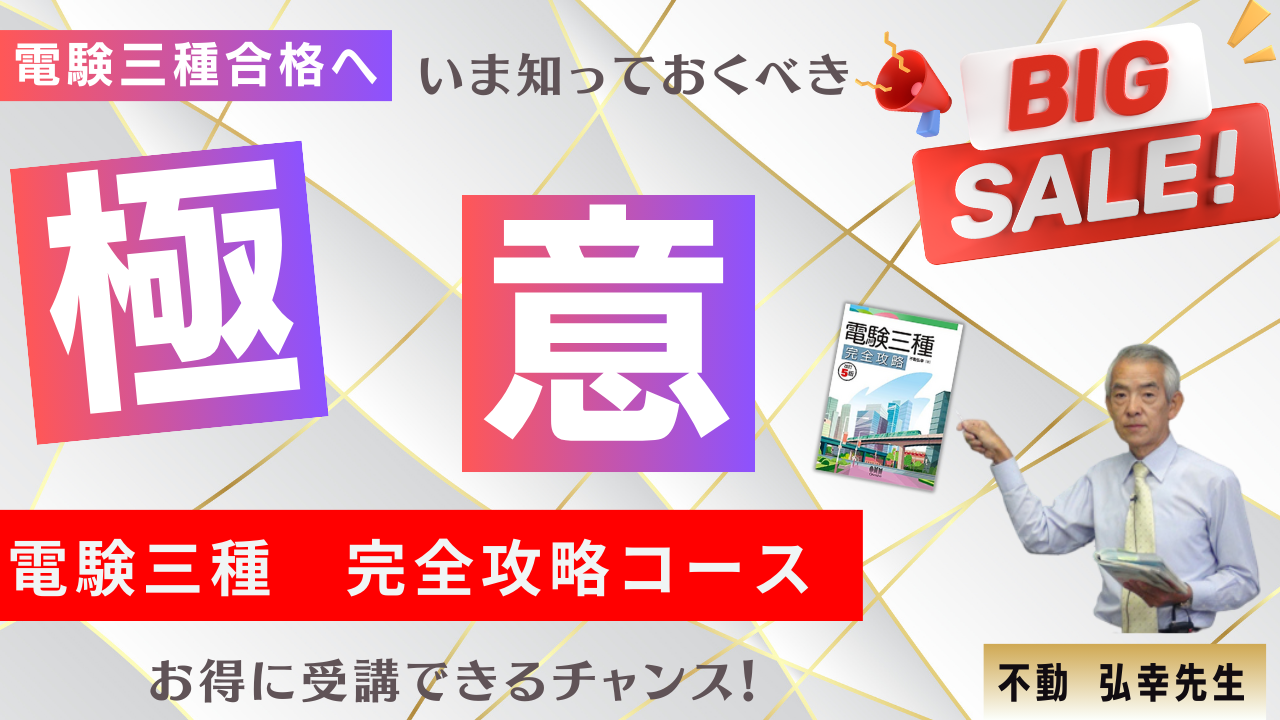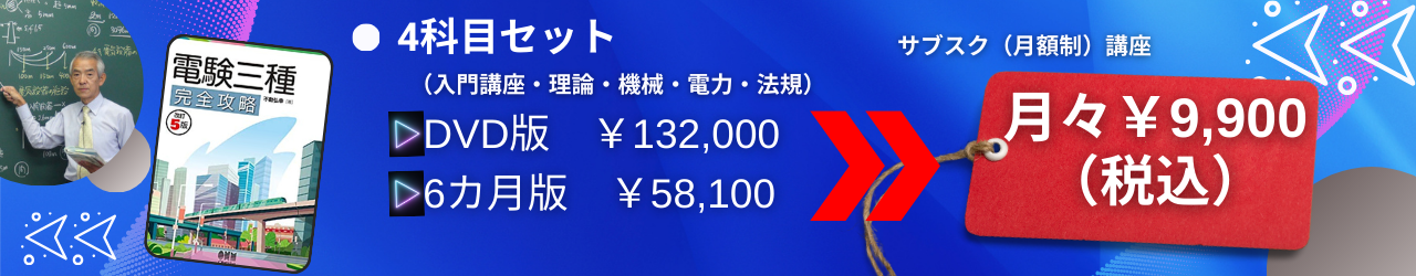 4科目で学ぶ内容を1冊にまとめた「電験三種 完全攻略」(発売:オーム社/著者:不動弘幸先生)で講義を進めていく講座です。基本となる知識と過去の試験問題から出題傾向の高い分野の知識をまとめたテキストです。難解な知識や、一度出題されたけど再出題の可能性が低い知識を省き、効率良く学習が出来る構成です。